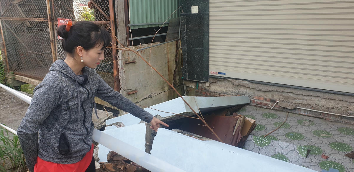 Hậu quả là sau đó, các vết nứt lớn xuất hiện trên đất vườn của nhiều hộ dân. Trong đó, nhà ông Dũng sập 1 gian nhà, tụt 1 bể ngầm 8m3 và 1 bể nổi 6m3. Tiếp theo đó là các dãy nhà phía sau (thuộc tổ 6, khu 3B) bị nứt tường, nứt sân. Đỉnh điểm là vào ngày 22/2/2022, căn nhà từ đường của bố mẹ anh Nguyễn Ngọc Quyết và chị Lưu Hồng Liên đã bị đổ sập.
