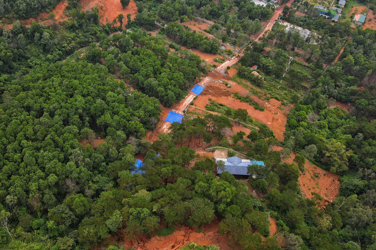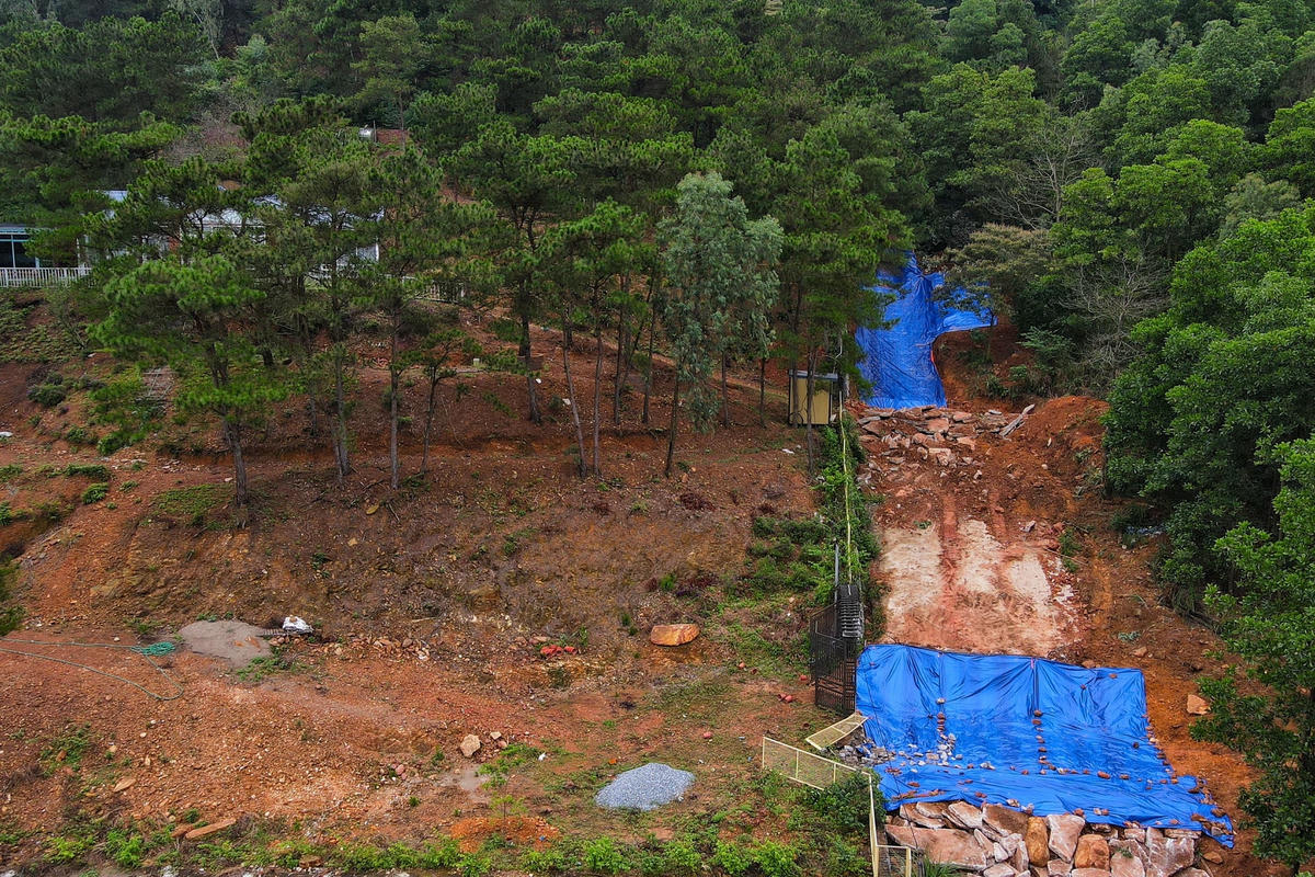 Trong ngày 7/8, chính quyền sở tại đã huy động máy xúc cỡ lớn tiến hành phá dỡ đoạn đường bê tông từ chân đồi lên giữa đồi. Khu vực này cũng được cắm biển cảnh báo khu vực sạt lở nguy hiểm, cấm người ngoài vào bên trong.