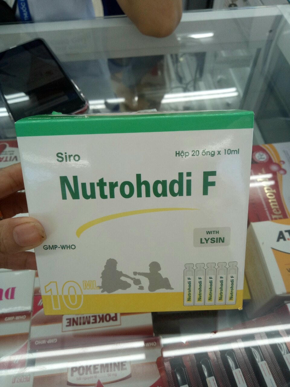 Theo giới thiệu của nhân viên quầy thuốc trước cổng Bệnh viện đa khoa tỉnh Hà Tĩnh thì tại một quầy thuốc ở đường Trần Phú, TP Hà Tĩnh cũng đang bán loại Siro Nutrohadi F do Công ty CP Dược Hà Tĩnh sản xuất.