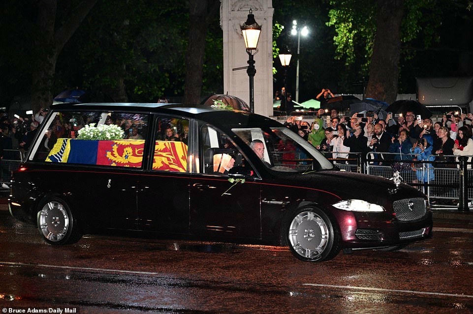Sáng 14/9 (theo giờ Việt Nam), Vua Charles III và các thành viên Hoàng gia Anh đã đón linh cữu của cố Nữ hoàng Elizabeth tại Cung điện Buckingham, trong khi hàng chục nghìn người không ngại xếp hàng dài trên các đường phố trong mưa lớn để chờ đón linh cữu của Nữ hoàng ở thủ đô nước Anh.