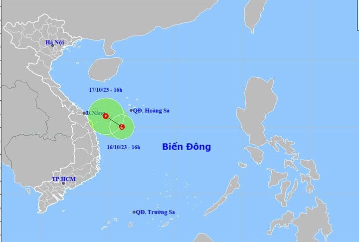Theo Trung tâm Dự báo khí tượng thuỷ văn quốc gia, lúc 16h hôm nay 16/10, vị trí trung tâm vùng áp thấp trên vùng biển phía Tây Nam quần đảo Hoàng Sa.