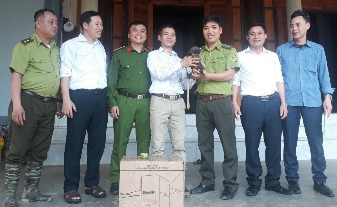 Nhận được thông tin, Hạt kiểm lâm huyện Kỳ Anh đã phối hợp với chính quyền địa phương đến nhà ông Nin và tuyên truyền, vận động gia đình này giao nộp cá thể động vật quý hiếm trên để thả về môi trường tự nhiên.