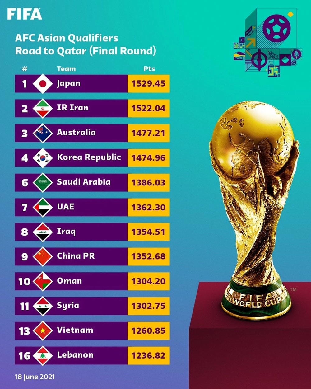 Theo phân loại, đội tuyển Việt Nam nằm ở nhóm hạt giống số 6 cùng với Lebanon nên chắc chắn phải chạm trán toàn đối thủ mạnh ở vòng loại thứ ba. Thầy trò huấn luyện viên Park Hang-seo có thể phải chung bảng với Nhật Bản, Hàn Quốc, UAE, Trung Quốc và Oman.