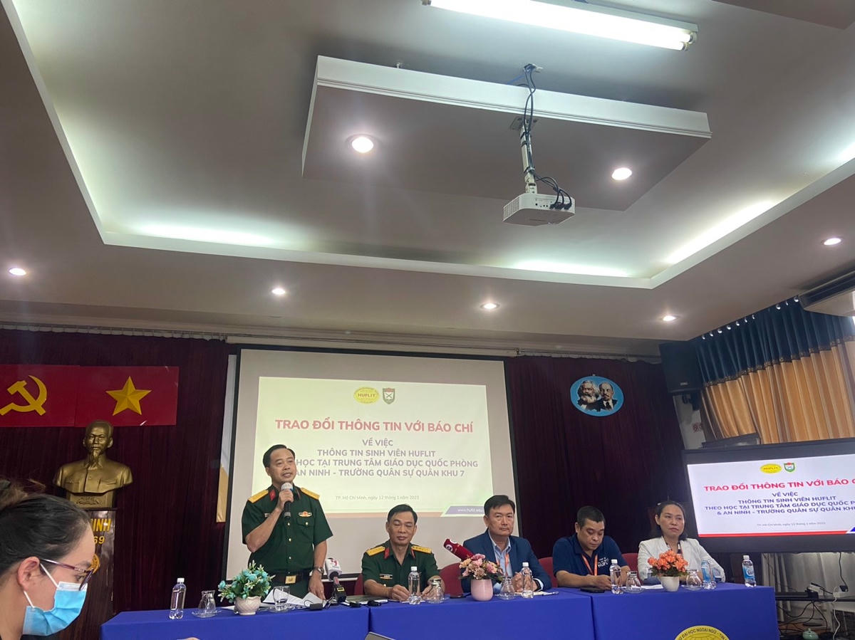 Chiều 12/1, Trường Đại học Ngoại ngữ - Tin học TP HCM (HUFLIT) và Trường Quân sự Quân khu 7 phối hợp tổ chức họp báo thông tin về tin đồn đang gây xôn xao dư luận liên quan đến hai nữ sinh viên trường HUFLIT bị xâm hại trong quá trình học giáo dục quốc phòng tại Trung tâm Giáo dục Quốc phòng và An ninh thuộc Trường Quân sự Quân khu 7.