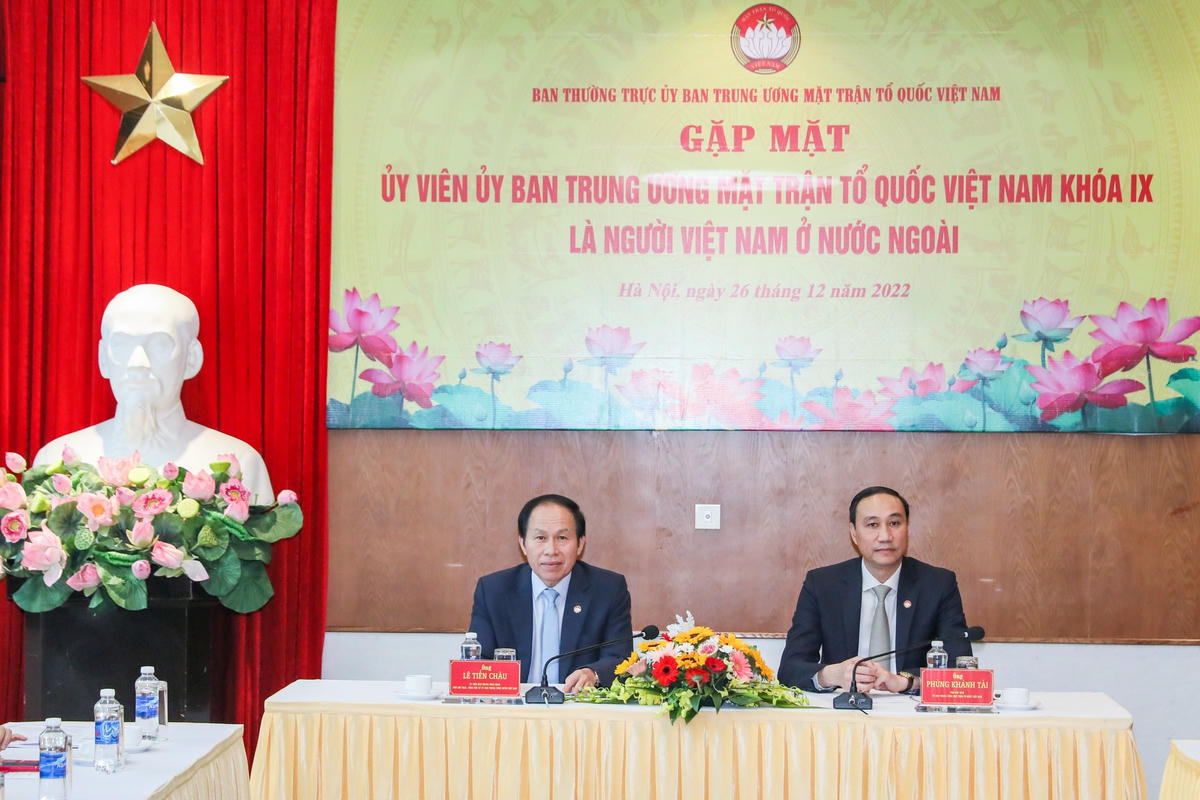 Chiều 26/12, tại Hà Nội, Ban Thường trực UBTƯ MTTQ Việt Nam đã tổ chức gặp mặt Ủy viên UBTƯ MTTQ Việt Nam khóa IX là người Việt Nam ở nước ngoài. Dự và chủ trì buổi gặp có ông Lê Tiến Châu, Ủy viên Trung ương Đảng, Phó Chủ tịch – Tổng Thư ký UBTƯ MTTQ Việt Nam; ông Phùng Khánh Tài, Phó Chủ tịch UBTƯ MTTQ Việt Nam.