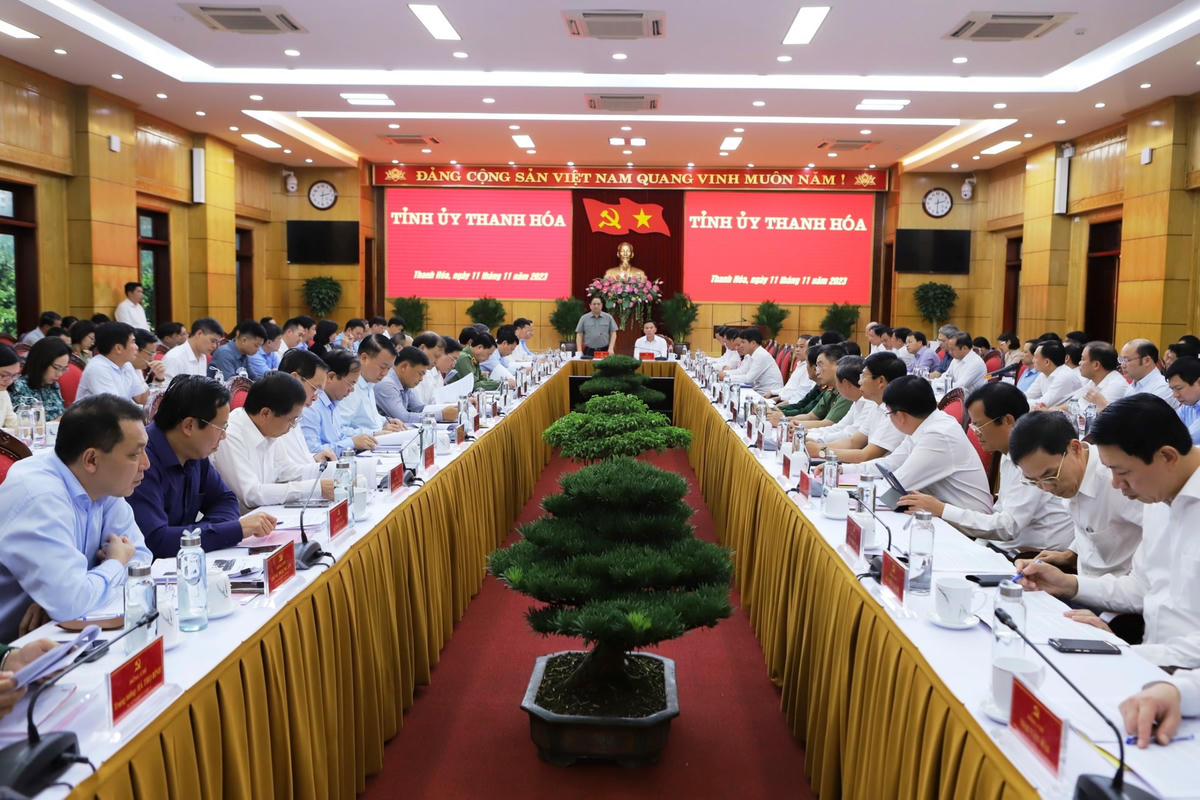 Trong khuôn khổ chuyến thăm và làm việc tại tỉnh Thanh Hóa, chiều 11/11, Thủ tướng Phạm Minh Chính và đoàn công tác Trung ương đã làm việc với Ban Thường vụ Tỉnh ủy Thanh Hóa về tình hình kinh tế - xã hội, quốc phòng - an ninh, công tác xây dựng Đảng và hệ thống chính trị từ đầu nhiệm kỳ Đại hội Đảng bộ tỉnh lần thứ XIX đến nay; nhiệm vụ trong thời gian tới.