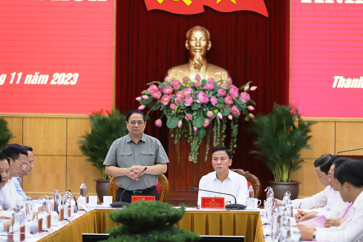 Phát biểu kết luận tại buổi làm việc, Thủ tướng Phạm Minh Chính đồng tình với các báo cáo, ý kiến tại cuộc làm việc; ghi nhận, biểu dương nỗ lực và kết quả đạt được của Đảng bộ, chính quyền, quân và dân tỉnh Thanh Hóa, góp phần quan trọng vào thành tựu chung của cả nước. Sau Đại hội XIII của Đảng, tỉnh đạt nhiều kết quả đáng khích lệ, đáng mừng trên tất cả các lĩnh vực.