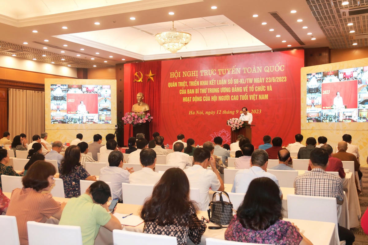 Trung ương Hội Người cao tuổi Việt Nam vừa tổ chức Hội nghị trực tuyến toàn quốc quán triệt, triển khai Kết luận số 58-KL/TW ngày 23/6/2023 của Ban Bí thư Trung ương Đảng về tổ chức và hoạt động của Hội Người cao tuổi Việt Nam.