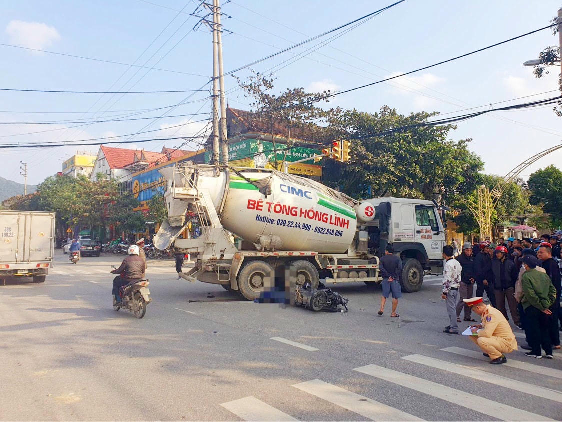 Theo đó, khoảng 14h40 chiều cùng ngày, tại đường Trần Phú giao với đường Nguyễn Đổng Chi và đường 3/2 (thuộc địa bàn phường Nam Hồng, thị xã Hồng Lĩnh) chiếc xe bồn chở bê tông mang BKS 38H - 001.30 do N.Q.D. (31 tuổi, làm tài xế) di chuyển gần qua khúc giao ngã tư đèn tín hiệu giao thông thì xảy ra va chạm với xe máy mang BKS 38P1 - 682.72 do anh T.A.T. (24 tuổi, trú tại xã Sơn Phú, huyện Hương Sơn, tỉnh Hà Tĩnh) điều khiển theo chiều ngược lại.
