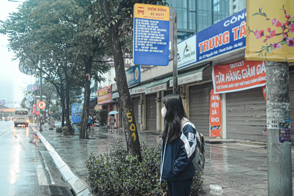 Xe buýt Hà Nội chạy 100% công suất, học sinh đội mưa, háo hức chờ