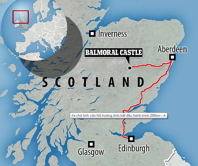 Reuters cho biết, bắt đầu từ 10h sáng nay 11/9 theo giờ địa phương, xe chở linh cữu Nữ hoàng Anh Elizabeth II đã bắt đầu hành trình kéo dài 6 giờ đồng hồ, qua quãng đường dài khoảng 290 km từ lâu đài Balmoral (Scotland) di chuyển qua các làng mạc, thị trấn nhỏ đến Edinburgh. Người dân ở các địa phương nơi xe chở linh cữu đi qua sẽ có cơ hội được cúi chào lần cuối người trị vì lâu nhất trong lịch sử Vương quốc Anh.