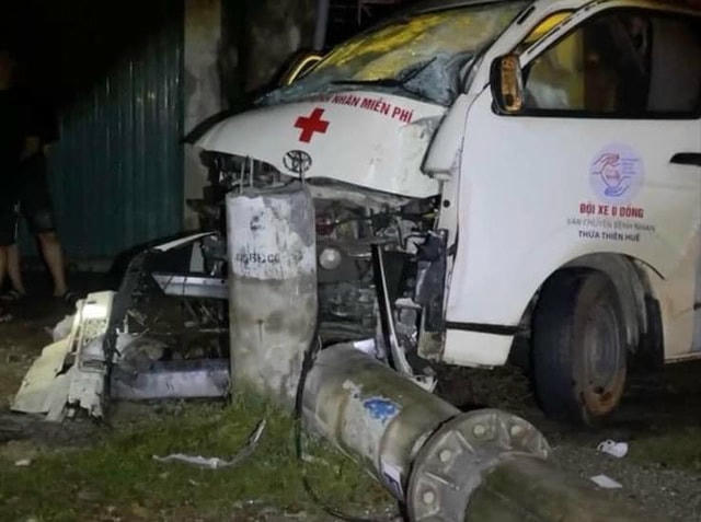 Đang di chuyển trên Quốc lộ 1A sau khi trả bệnh nhân tại thị xã Ba Đồn (Quảng Bình), xe cứu thương ''0 đồng'' bất ngờ mất lái tông gãy cột điện khiến hàng trăm hộ dân bị mất điện.