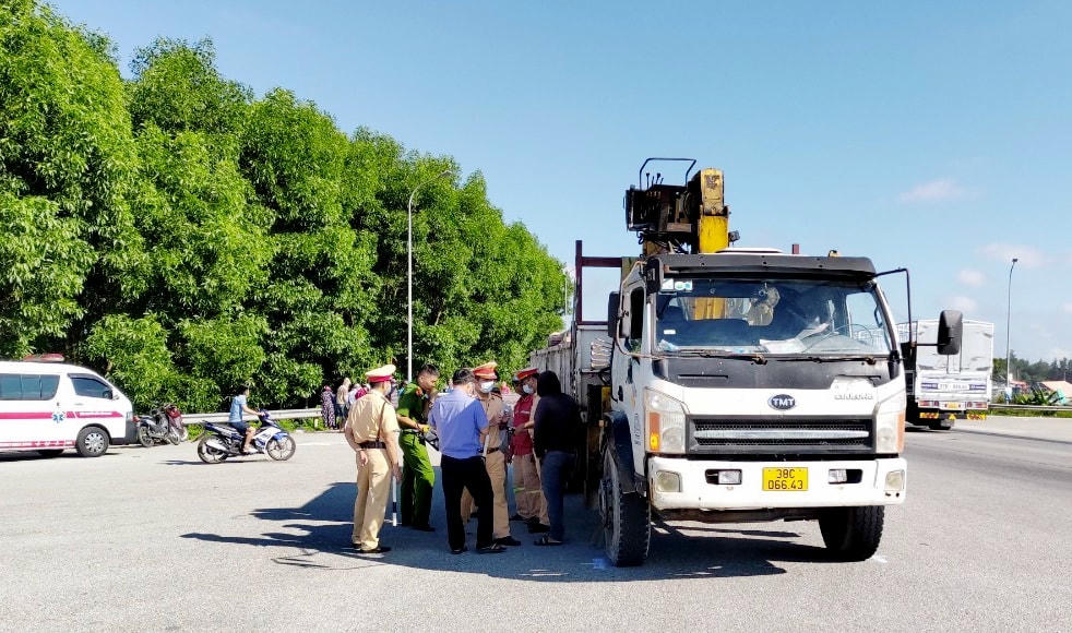 Theo đó, khoảng 7h ngày 25/7, xe tải gắn cẩu mang BKS 38C-066.43 (do Nguyễn Văn Chung, 32 tuổi, trú tại xã Thạch Đài, huyện Thạch Hà, tỉnh Hà Tĩnh) điều khiển di chuyển trên QL1 tuyến tránh TP Hà Tĩnh theo hướng Bắc - Nam.