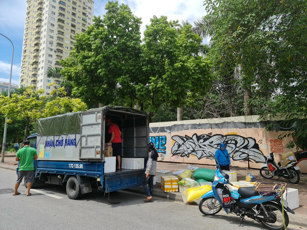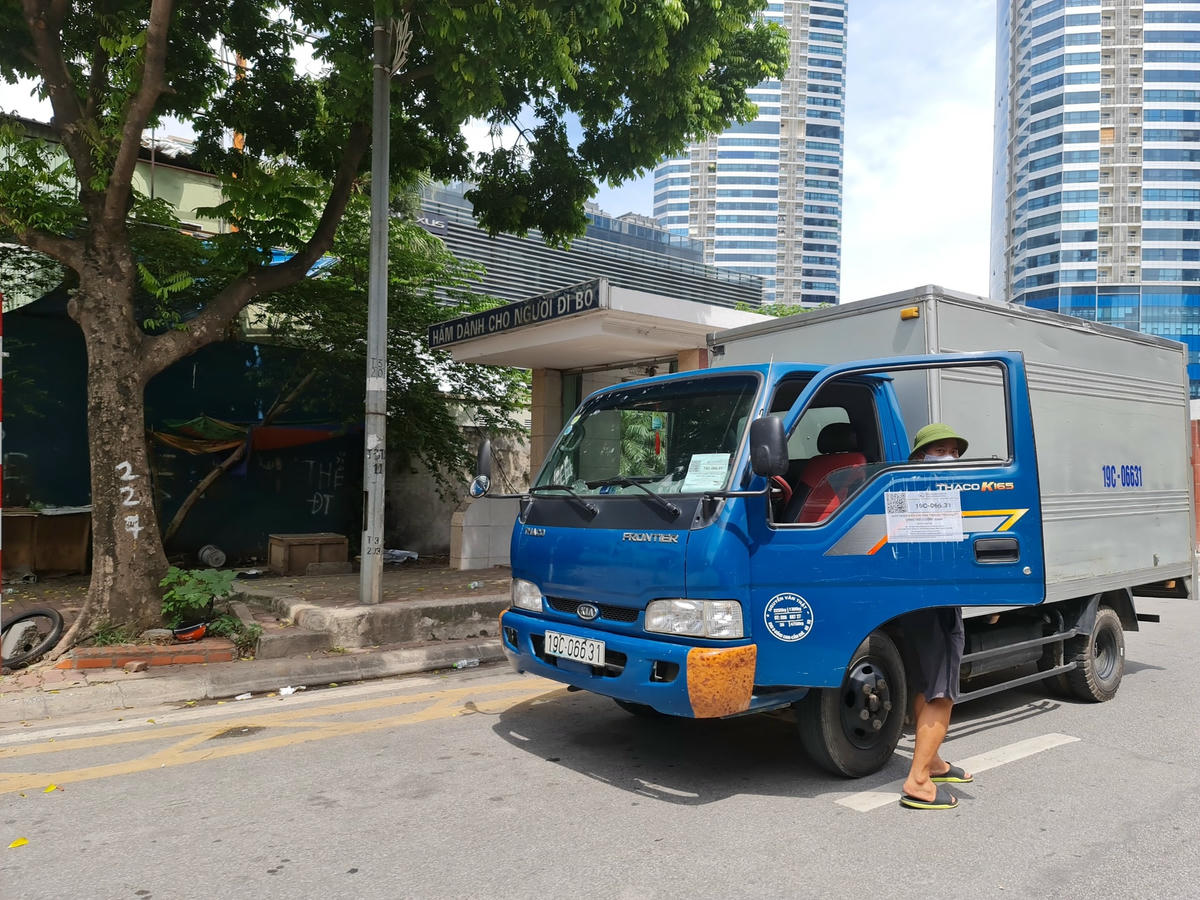 khi Hà Nội thực hiện giãn cách xã hội, hàng loạt xe tải ngang nhiên công khai lập bến “cóc” dưới lòng đường để nhận, trả hàng hóa trên đường Phạm Hùng.