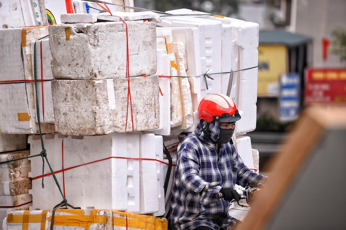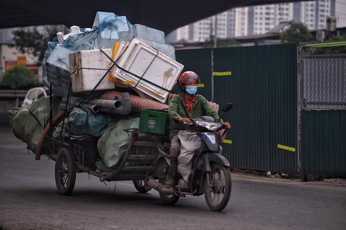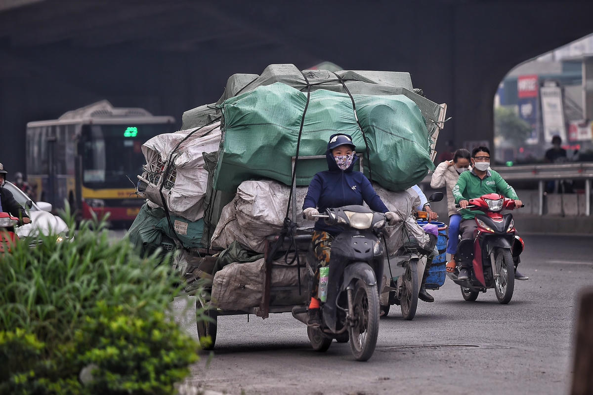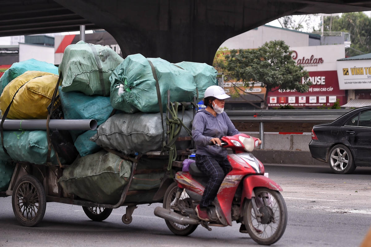 Hình ảnh những xe máy chở hàng cồng kềnh, lưu thông trên đường phố Hà Nội không còn là chuyện xa lạ. Từ nhiều năm nay, các xe này là phương tiện vận chuyển hàng hóa phổ biến, tiện lợi để luồn lách trong ngõ nhỏ ở các quận trung tâm.