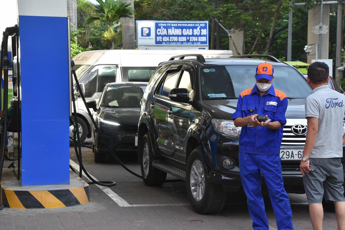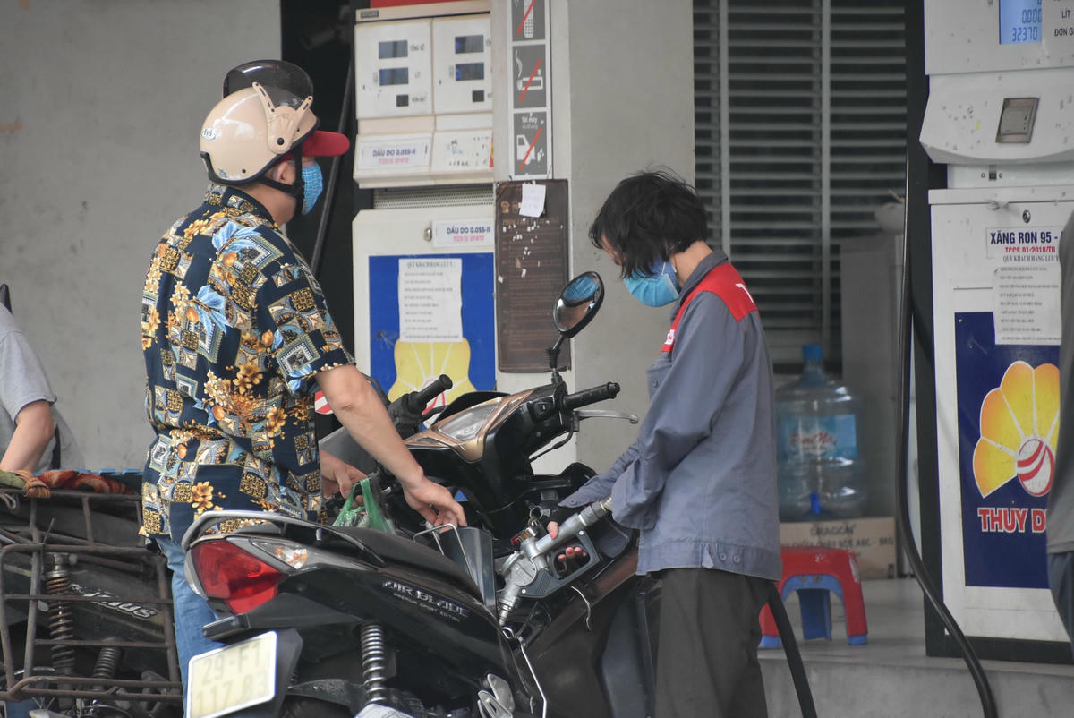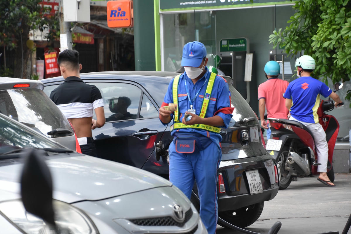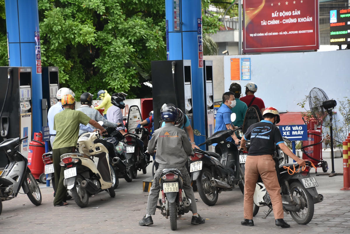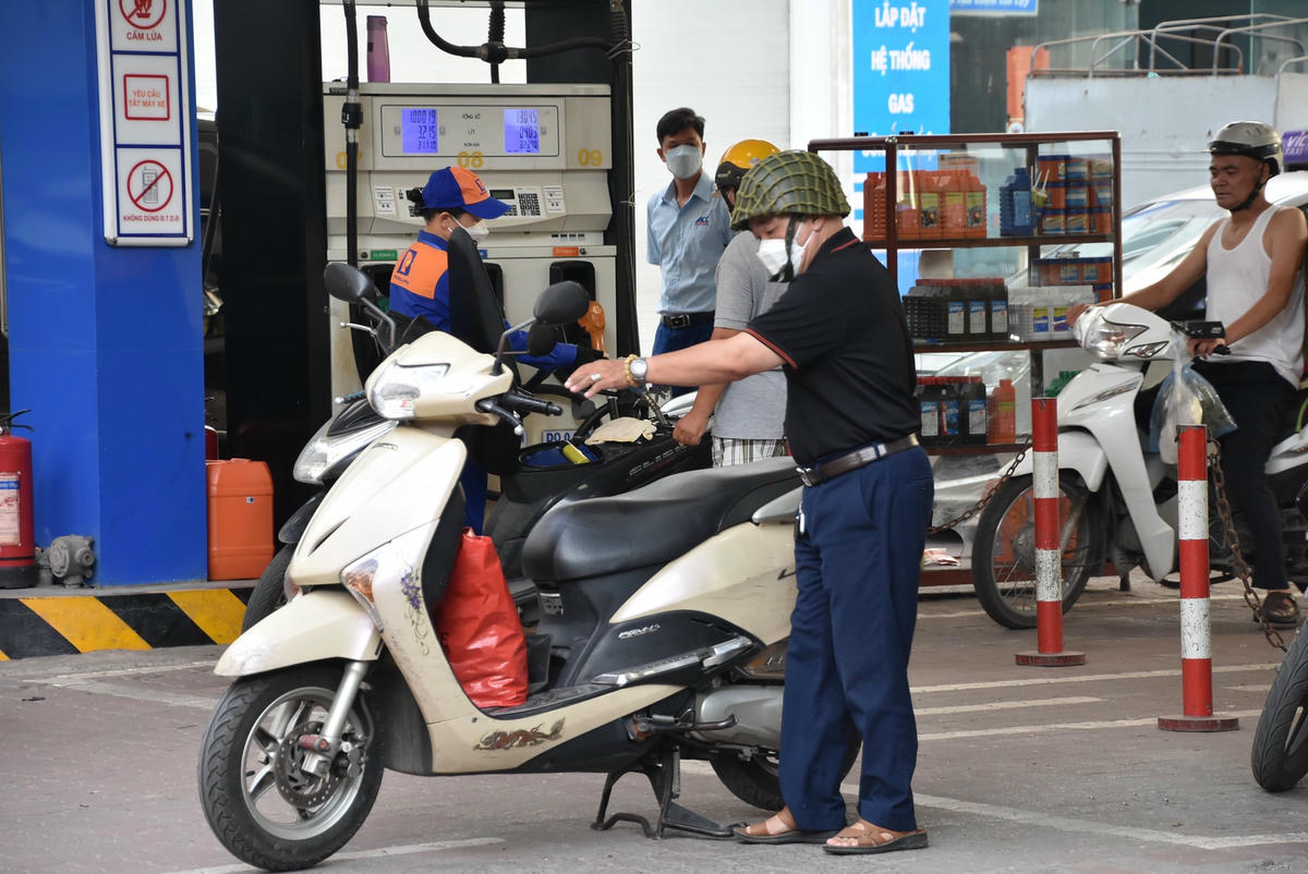 Nhiều người dân Thủ đô tranh thủ đổ xăng từ sáng sớm trước thông tin giá xăng tiếp tục "leo thang" trong phiên điều chỉnh giá vào chiều nay (21/6).