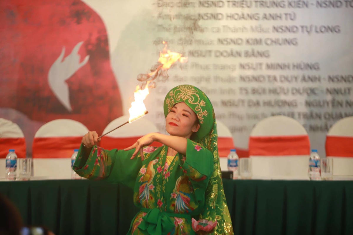 “Tác phẩm lần này, các nghệ sĩ sẽ đề cao hơn nữa sự tương tác với khán giả. Do mỗi vở diễn, nội dung câu chuyện được lựa chọn đạo cụ phù hợp, ví dụ nhào lộn, thăng bằng… nên vở “Thượng Thiên Thánh Mẫu” không thể lặp lại những đạo cụ, trò diễn của vở trước”, NSND Tống Toàn Thắng nói.