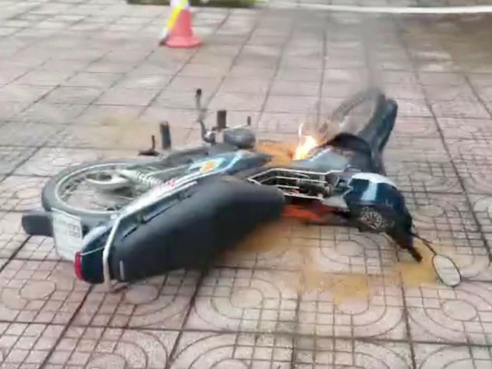 Phát hiện sự việc, tổ công tác đã cùng với người dân kịp thời dập lửa, tại hiện trường chiếc xe máy bị cháy phần nhựa gần lốc máy phía bên trái.
