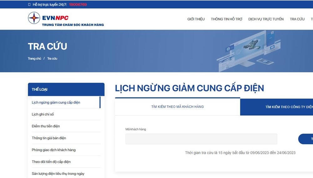 Hiện nay, EVNNPC chỉ sở hữu trang website tại địa chỉ: https://npc.com.vn/ và khách hàng có thể tra cứu lịch ngừng, giảm cung cấp điện tại website Trung tâm Chăm sóc khách hàng có địa chỉ: https://cskh.npc.com.vn/