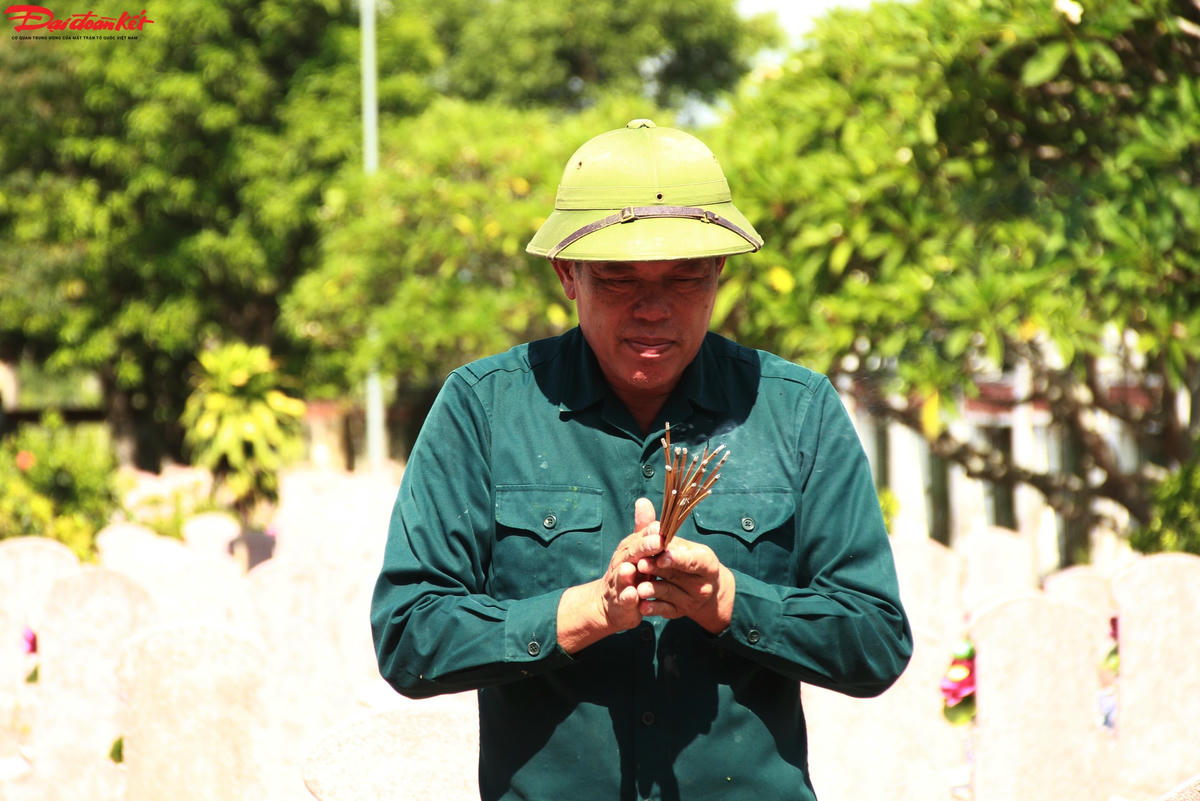 Trong nghĩa trang vắng vẻ, chỉ có mình anh làm bạn với hàng nghìn ngôi mộ. Hơn cả một công việc, sự tận tụy, thành tâm của anh như một mạch kết nối âm dương giữa các liệt sĩ và những người đang sống.